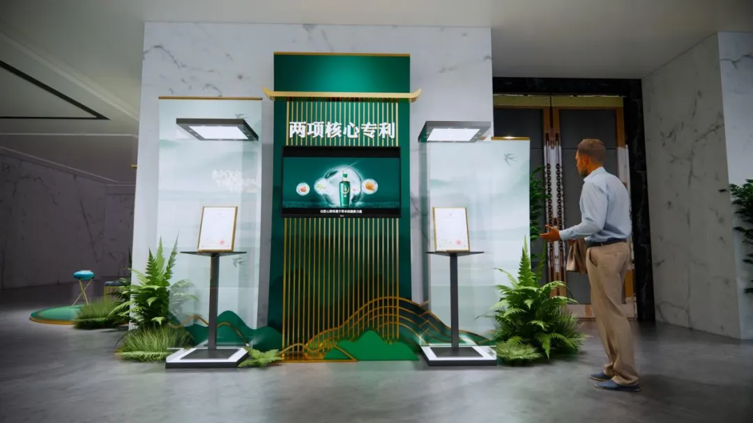 此外,外场序厅还对毛铺草本年份酒健康密码“2、5、12”进行深度解读,数字“2”代表着毛铺获得的2项国家发明专利:《抗酒精性伤肝的护肝白酒其生立工艺》、《一种有降血脂功能的苦养酒制备方案》;数字“5”代表着毛铺草本年份酒融合了5味草本精华,从而赋予其健康内涵;数字“12”代表着毛铺草本年份酒12年陶缸陈酿的真实年份。这款主打“草本浆 真年份”的产品的核心品质点,在现场一物一景中得到了充分的展示。