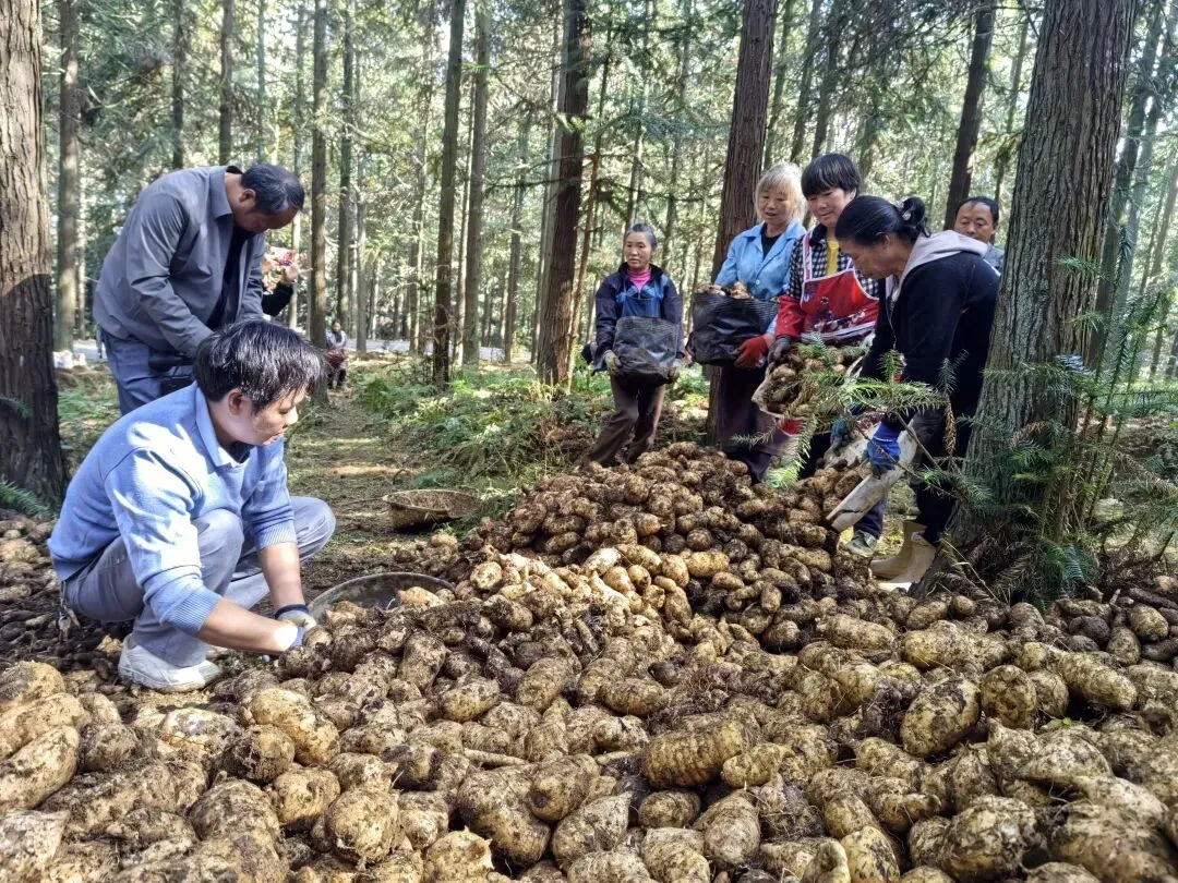 赫章县平山林场林下天麻种植基地工人分拣天麻 闵罡 摄