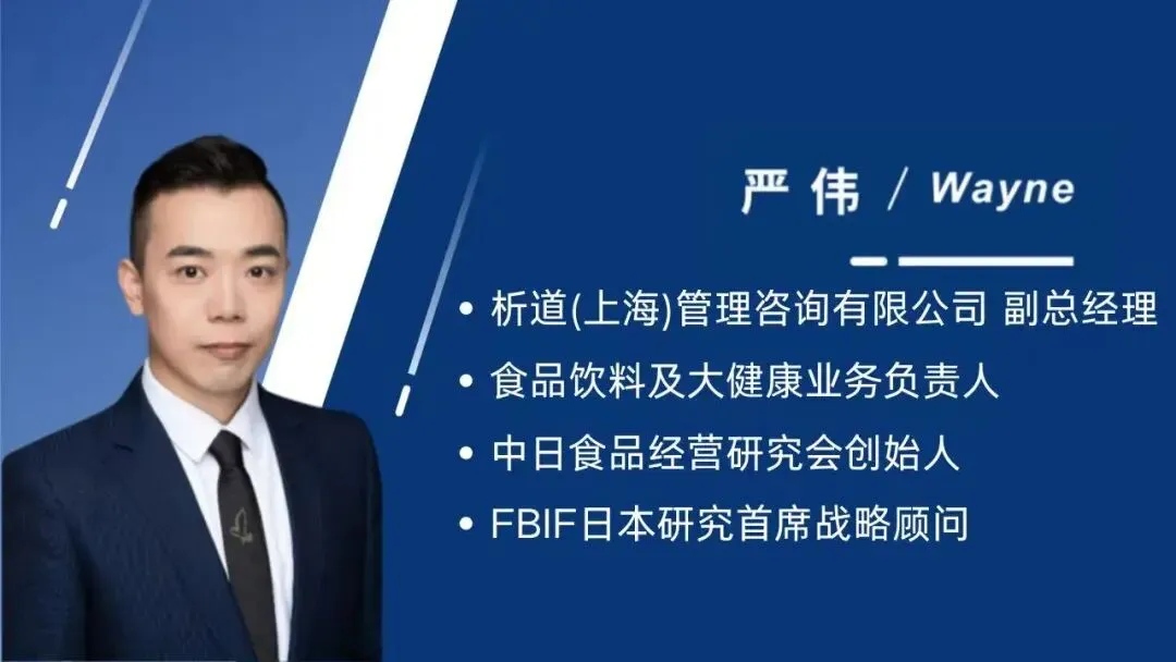 严伟,日本析道集团食品饮料及大健康业务中国区总监,析道(上海)管理咨询有限公司副总经理,中日食品经营研究会创始人、主理人。曾任日本某大型上市公司东南亚战略总监,拥有10年包括日本、东南亚、中南美市场战略制定经验。目前主要帮助日本大型食品饮料企业制定中国市场战略,同时以“質実剛健・誠実力行”的日式经营理念,服务中国食品饮料企业的战略咨询与业务调改。