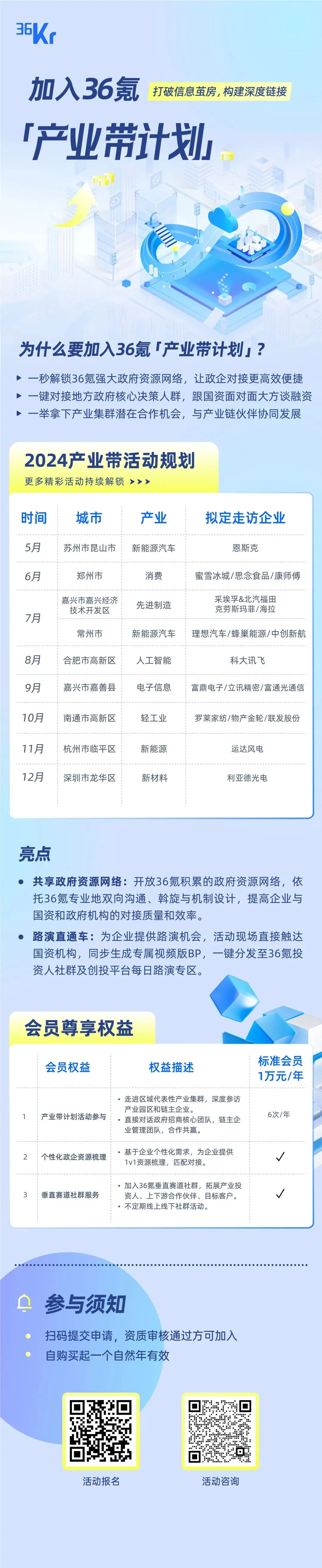 事实上,有合作需求的不只是企业。36氪持续和地方各级政府开展合作,目前已链接超100家政府。这两年,政府最高频的需求也变成了“能不能给我们推荐一些好项目?”。在产业对接这件事上,不少企业的体会是“加的人很多,能拍板的人很少”。一线FA的经验是,撮合项目拿国资,最快半年,长则数年,平均50个项目里才能成1个。究其原因,很多中小企业其实没有专业的沟通团队、IR体系,以及较强的政府资源体系支撑其进行全国范围内的比对;另一方面,国资的底线是安全,整个合作流程中需要引入更多人和环节来保证底线不容有失,合作细节的复杂程度远超风险投资时代。匹配效率上,做过融资对接的人都深有体会“资源如果只是触达,那就相当于没有”。“协助企业与地方政府沟通,是一件非常难和专业的事情。首先得有相对广泛的区域经济、政府招商体系的认知基础,其次快速理解各个行业,才能深度挖掘和高效匹配双方需求。然后再结合项目的融资需求、土地需求、订单需求等多要素维度综合匹配,用专业的财税测算和双边斡旋能力促成合作。”老谢表示:“最大的难点在于一个再好的落地项目,结合各种综合条件,与之匹配的地方政府不会很多,要帮企业做减法。”某AI医疗企业近些年发展迅猛,但苦于得不到当地有效的政策扶持,今年计划将公司总部迁至新城市。该企业带着诉求找到了36氪,我们也很快理解到其核心诉求不仅仅是融资,而是需要借助区域优势获得更多政策扶持和融入产业链的机会,为日后IPO铺路。然而AI、生物医药作为热门赛道,是不少政府招商引资方向中都会提及的领域。36氪如何为这个项目匹配最合适的落地区域?这一步考验的是对政府及产业政策的深度理解。两个医疗产业链根深叶茂的长三角城市或许是首选,但基于过往密切的政府需求沟通经验,36氪最先把这两个城市排除了,因为A市今年只看马上能上市的项目,B市当前的重点是消化厂房,该项目的发展阶段和产能需求跟区域并不匹配。反而是欢迎总部经济落地的C市,能够提供更多的人才补贴和技术认证扶持,以该项目核心团队的履历资质,千万级别的人才补贴不在话下。在36氪的推动下,双方几乎一拍即合,1个月内就促成了高层决策者的见面。精准的匹配能让双方坐在谈判桌上,更涉及成败的是合作方案的细节设计。36氪近期正在推进的另一家独角兽企业,经过3个多月的意向对接和洽谈,终于和东部沿海某政府坐在一起推进融资落地条款。但3个小时的拉锯式谈判,围绕的却不是上亿体量的资金,而是两个涉及补贴的细节协议。谈判的最后,围绕双方对风险防范的核心诉求,36氪为其量身定做了一套保障资金安全的方案机制,合作才得以继续推进。可以预见的是,随着一级市场国资占比进一步提高,未来企业侧仍会有大量政府和产业对接需求。基于此,36氪持续开展“产业带计划”招募,把过去多年积累的企业、政府服务能力,升级为更专业的产业会员服务。我们希望基于36氪丰富的政企资源网络构建、双边理解力、斡旋能力和专业的机制设计,提高项目与国资的对接质量和对接效率。帮助项目找到合适的钱、链接关键的人、融入新的产业生态。