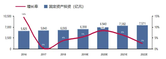 2016~2022年食品饮料行业固定资产投资变化情况及预测