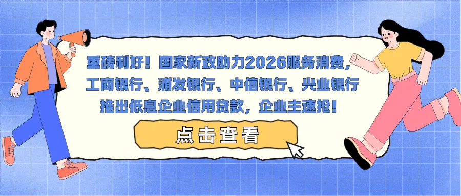 “想开家高端康养民宿,却因轻资产缺抵押贷不到启动资金;文旅公司旺季备货,急需资金周转却被银行审批卡住;教育机构扩校区,融资年化利率高达15%,还款压力压得喘不过气……”这是2025年服务消费领域无数企业主的真实困境!住宿餐饮、文体娱乐、教育康养、文旅出行等服务消费行业,多为轻资产运营,长期面临“融资难、融资贵、审批慢”三大痛点,制约行业扩容升级。但转机来了!为落实“十五五”规划扩大服务消费的部署,2025年央行设立5000亿元服务消费与养老再贷款工具,以低成本资金引导商业银行加大信贷投放。紧随新政,工商银行、浦发银行、中信银行、兴业银行四大行同步推出专项低息企业信用贷,直击服务消费企业融资痛点——无需押担保,年化利率低至2.85%起,50万-1000万额度任选,最快3天极速放款,轻资产企业、轻微征信瑕疵也能批!今天就把这份新政红利攻略全拆解:从国家服务消费新政核心解读、四大银行专项贷款亮点,到精准申请指南、真实获批案例,再到避坑要点,每一步都有实操细节,帮服务消费企业主快速拿到低息资金,抢占2026服务消费风口!