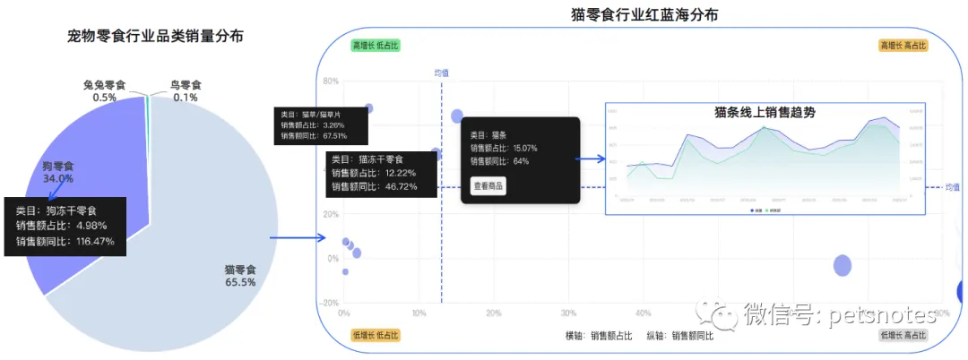 行业大盘:宠物零食市场的增长,源于宠物主人对于宠物的健康和口感的双重需求。随着人们对于宠物健康的认知不断提高,越来越多的宠物主人开始关注宠物食品的质量和营养价值,其中宠物零食成为了他们在日常生活中的选择。