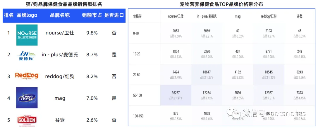 竞争情况:宠物营养保健食品赛道竞争激烈,价格段相对更高与主粮或零食赛道内品牌的重合度较低