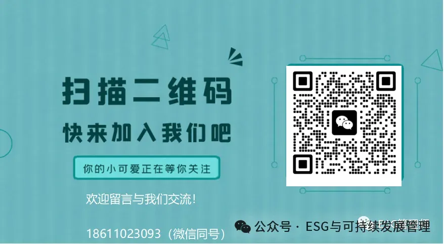 第一步:点文章开头左上角蓝字”ESG与可持续发展管理”关注公众号转发这篇文章到朋友圈(小号、分组、删除或PS直接拉黑哦,朋友圈要设为可见)保留2小时获并得2个赞或转发2个100人以上金融、法律、投资、财务、咨询、班级/校友群相关微信群保留2个小时。