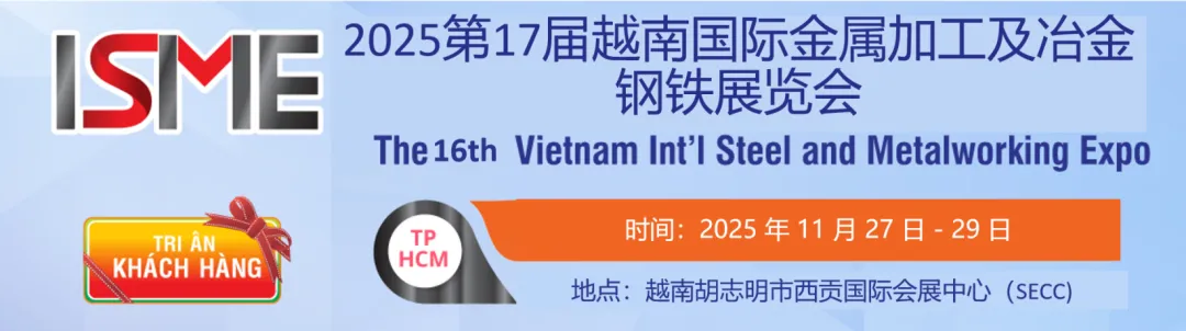 展会简介:越南国际金属加工及冶金钢铁展览会(ISME VIETNAM2025)是越南钢铁协会、越南铸造与冶金科技协会年度重点贸促交流活动,至今已成功举办15届,ISME是越南当前专业的金属加工及冶金钢铁工业展览会。在ISME VIETNAM,您可以了解到越南前沿的冶金、钢铁、铝工业商讯及行业主要企业的发展需求。上年度展会举办吸引来自中国、德国、中国台湾、韩国、印度、越南等国家及地区约200多家企业参展推介。同期参展的金属加工、焊接与切割、机电及五金工具等联展参展企业规模达450+,共计吸引超过21000名专业观众到场观展交易。