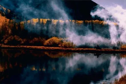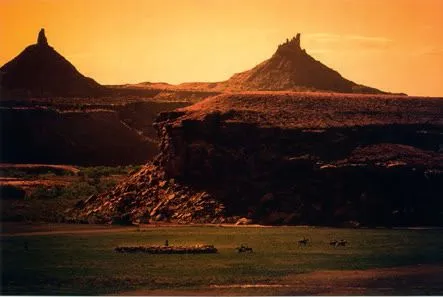 ▲第一幅照片以暖色(黄色和棕色)为主色调:背景处细碎的阳光洒落在洛基山脉上,近景中牛仔的剪影轮廓显得渺小,身边陪伴着的是他的羊群。