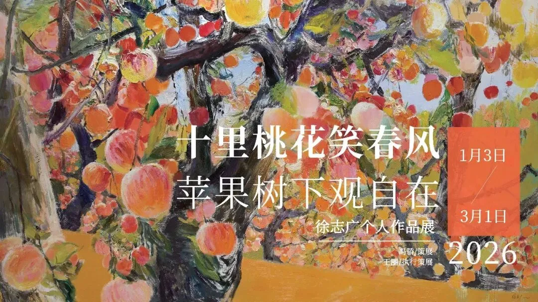 意大利中国理事基金会学院艺术馆将于2026年1月3日下午3点,在北京东直门来福士中心呈现徐志广的个人作品展“十里桃花笑春风·苹果树下观自在”。本次展览将展出艺术家近年来以苹果树和桃花源系列为主题的创作与实践,涵盖了40余件布面油画与纸本水彩、水墨作品,以及20余件釉下彩瓷器作品。展览由冯骄策划,将持续至3月1日。