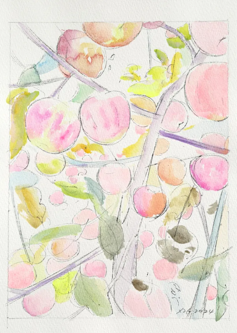 Let us follow Xu Zhiguang's brush and step into this spring where peach blossoms and apple trees intertwine, feeling the natural beauty and freedom of the soul embedded in every stroke, every drop of paint.