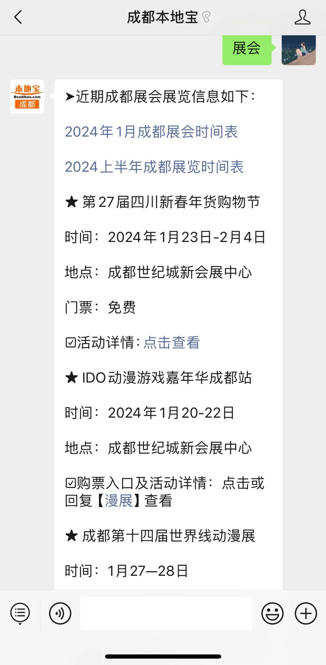 ?推荐服务:点击下方链接关注【成都本地宝】公众号,在聊天对话框发送【年货节】获取参展预约入口、更多活动详情。发送【展会】获取成都最新展会/展览信息、预约购票入口。