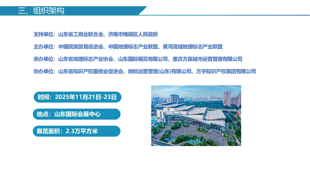 中国地理标志产业大厦(地理标志展示推广中心)正逐步成为地理标志产业集聚发展的重要载体,以及高效服务、品牌培育、展示交易、合作交流的优质平台。未来,大厦将立足山东和黄河流域,辐射全国、面向世界,融合追溯地标历史、普及地标文化、培育地标品牌、开展地标科研、推广地标金融、带动地标旅游等功能于一体,成为赋能地理标志产业发展的高端平台和品享地理标志产品美味的首选之地。