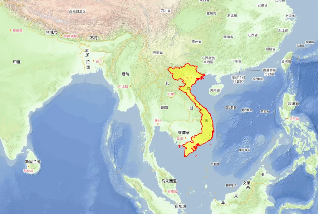 越南位于东南亚的中南半岛东南端,人口突破1亿,越南语为官方语言。越南首都是河内市,是越南第二大城市,第一大城市是胡志明市。2024年越南GDP超4700亿美元,同比增长7%,属于高速发展中国家。