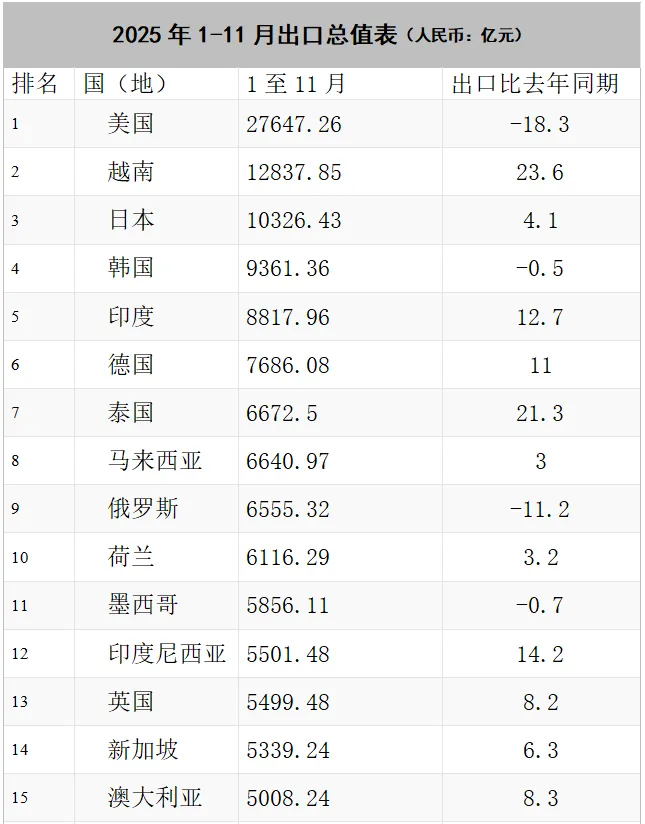 2025年1-11月中国对越南的出口“规模靠前、增速突出”;