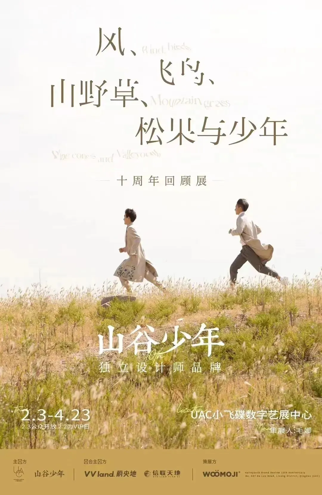 本次展览呈现了山谷少年这10年来74个系列的设计系列,展览精选60余套具有品牌代表性的服装,以及相关配饰、工艺介绍、制作过程、拍摄道具、设计灵感板等,在山野、海洋、草原、迷宫等不同场景中游走,沉浸式体验服饰带来的灵感启发与视觉震撼。