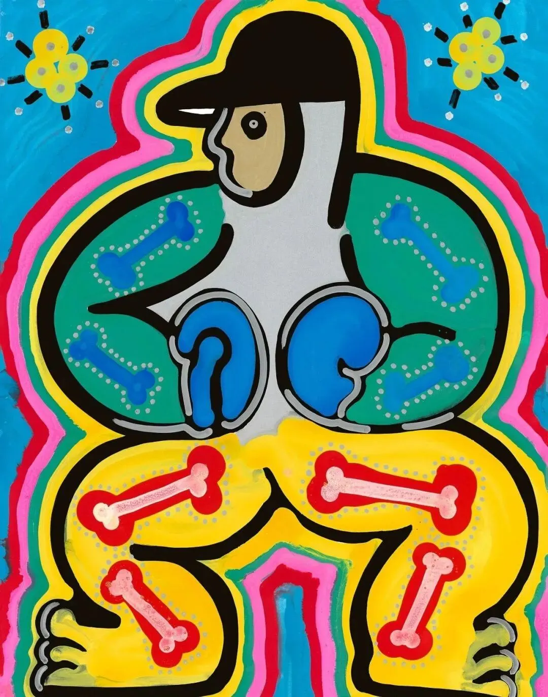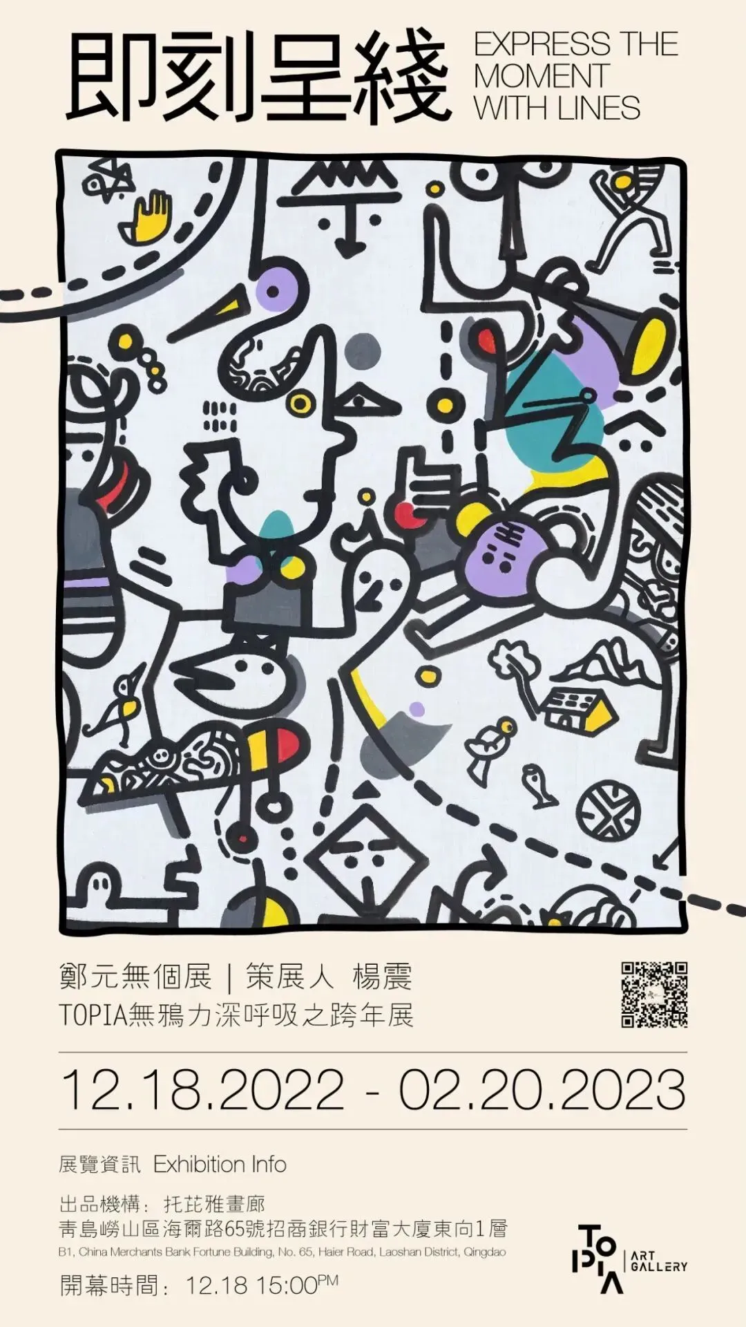 在郑元無最新涂鸦系列作品中更具鲜明的个人风格,在精神层面上更多的是个人乐观情绪的展示,各种奇思妙想、精灵古怪的形象在他笔端喷涌而出,占满整个画面。传统水墨的叙事性特征在元無的涂鸦作品中尤为明显。
