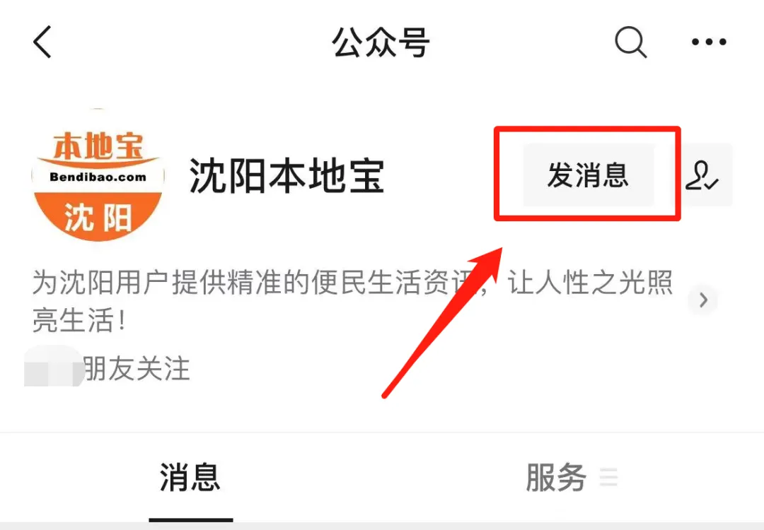 点击公众号头像旁边的发消息