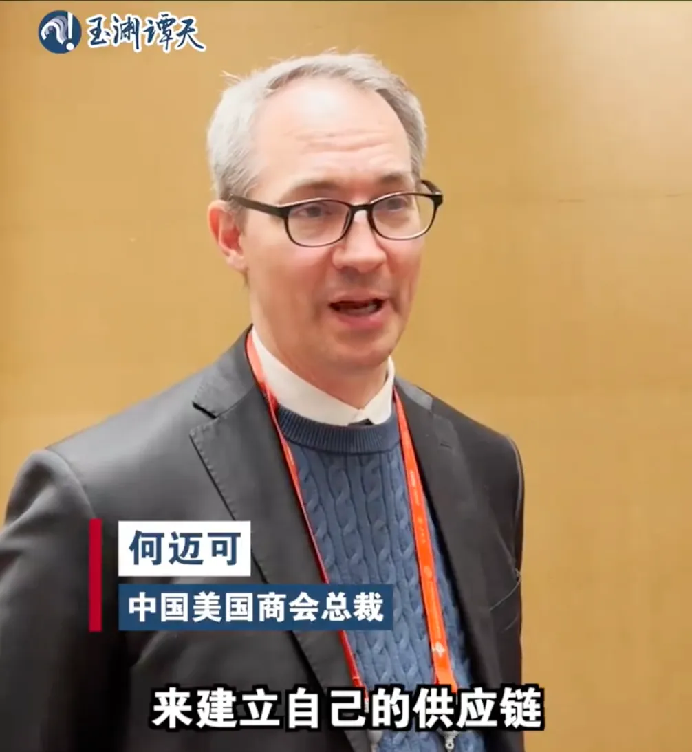 据“玉渊谭天”11月28日报道,中国美国商会总裁何迈可在接受采访时说: