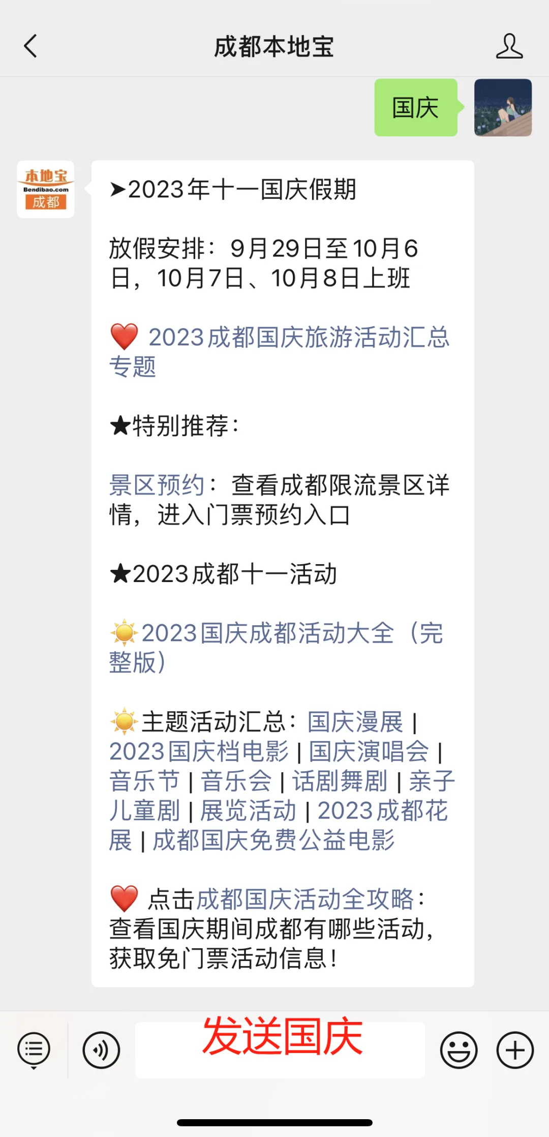温馨提示:关注【成都本地宝】公众号,在后台回复【景区预约】获取成都及周边免费、热门景区预约入口。回复【国庆】查看成都国庆活动汇总、游玩推荐、出行指南。