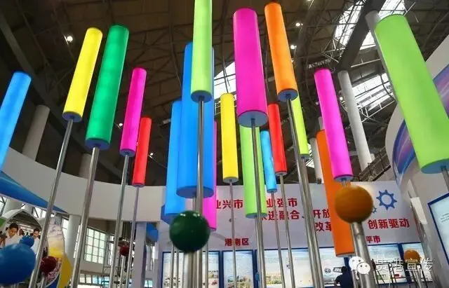 在展馆设计上,我市使用盛开中的荷花为主体造型,充分展示贵港新型特色产业,将特色元素——工业齿轮、荷花、敞开的大门、桥梁等元素融入设计,营造出展馆浓厚的动感、工业、科技氛围。