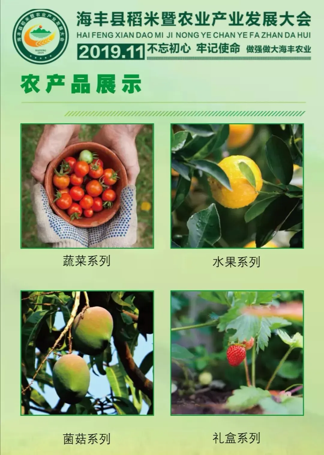 11月8日上午海丰县稻米暨农业产业发展大会即将在海丰市民广场隆重举行,对外开放的时间为11月8日中午2点至11月10日(晚上不对外开放)。据了解全县各乡镇都设展区,还有各种特色小食。届时特产、美食…,你去逛吗?