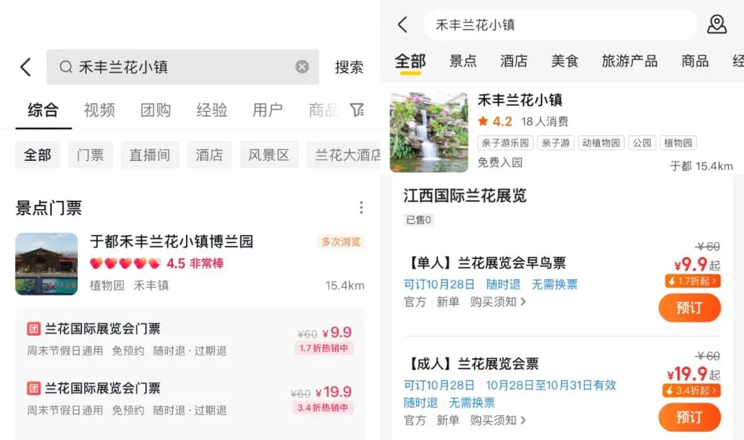 抖音/美团 搜索“禾丰兰花小镇”进入购票