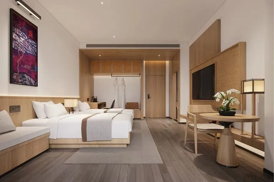 兰花酒店坐落于禾丰兰花小镇园区内,酒店共有各式客房170间,其中有单人间、双人间、亲子间、豪华套房和总统套房,共计280个床位;开放庄园式设计、绿树成荫、青草繁花,200余亩水面环绕,深度贴近自然。以高品质的服务标准全程提供个性化暖心服务,给您舒适的入住体验;舒适惬意的大堂、自助餐厅让精致的生活更添浪漫;5间具有兰花特色文化气息的中餐包厢及自助餐厅、多功能宴会厅,可同时容纳600人用餐;一大四小5间专用会议厅,可满足300人会议。私人定制服务能够满足您的宴会、会议需求。