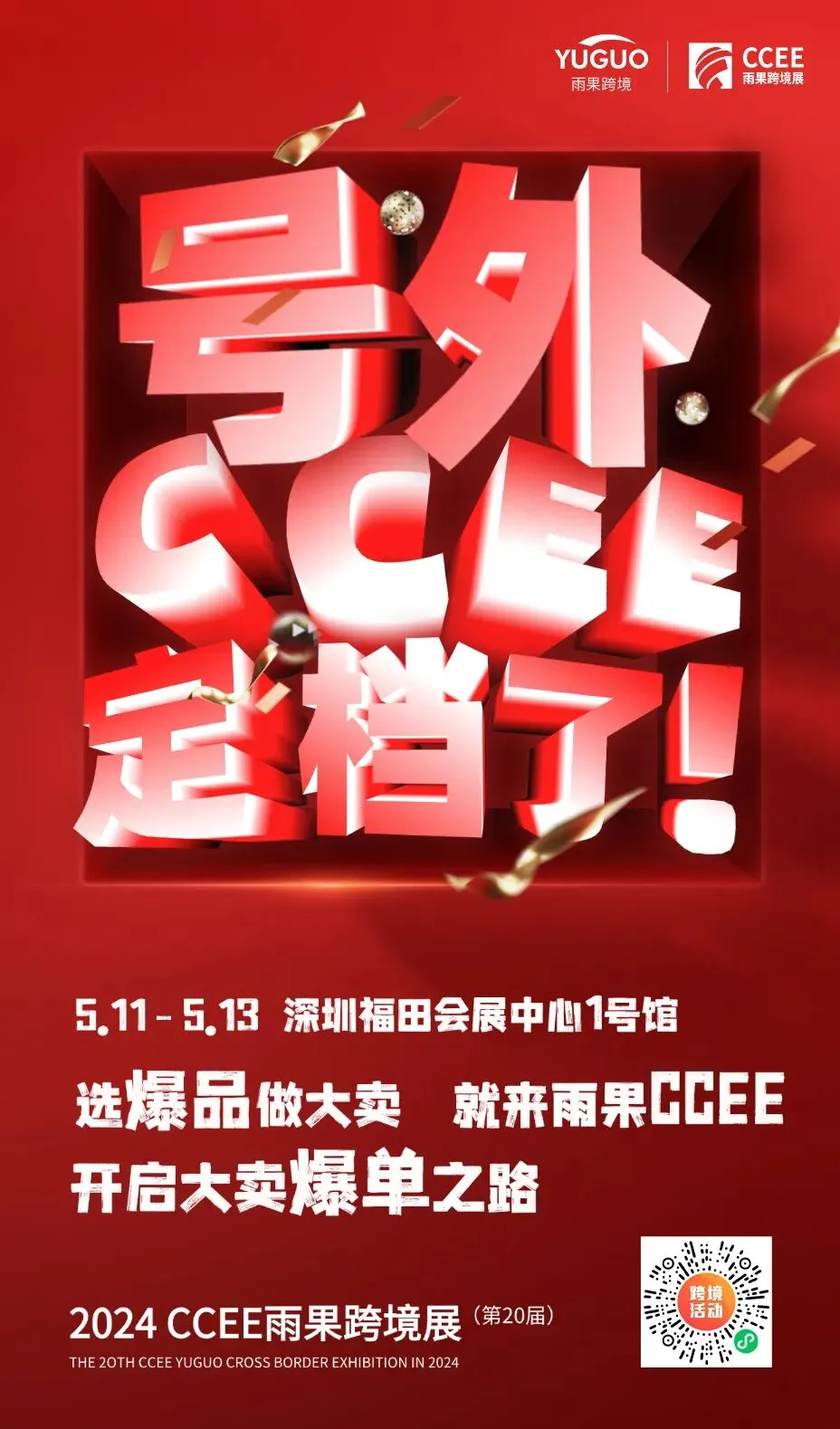 2024年,“半托管”的快速蔓延给跨境电商再添上一把火,更多的工厂商家加入进来,掀起出海领域一场波澜壮阔的商贸革新风暴。@工厂——精准触达大卖,将中国好品推向全世界,@卖家——找好工厂,选好品做大卖,在此,我们欣然宣布,备受瞩目的2024CCEE雨果跨境电商选品展(第20届)正式定档,5月11-13日,就在深圳。点击报名参会