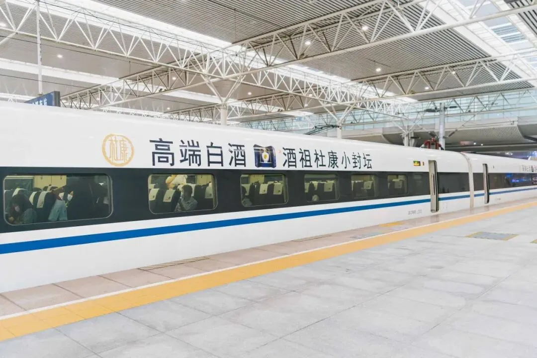 近两年来,杜康的品牌形象广告陆续登上央视黄金时段等主流媒介渠道,实现了高层次、高声量的全国化传播。以小封坛为例,“高端白酒 · 酒祖杜康小封坛 ”的宣传语已随高铁传遍全国各地,深度辐射重点城市集群,同时抢占机场、高铁站、城市核心商圈等制高点,构建起全方位、高频次、多点位宣传。