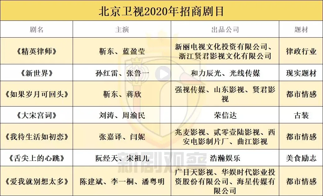 在北京卫视2020年招商会上公布的剧集名单中可以看出,北京卫视实力犹存。
