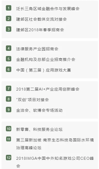 围绕主导产业开展招商系列活动,全年围绕法律产业、大数据,金融及总部企业,游戏、人工智能等12个月度主题,共排定45场招商活动,以每月1到2个招商主题为重点,做到“月月有活动,场场有亮点”。