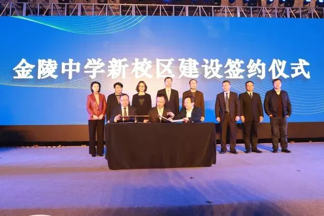 发布会上,南京市金陵中学与新加坡•南京生态科技岛管委会正式签署项目建设协议书,标志着金陵中学新校区正式落户江心洲(生态科技岛)并启动建设。