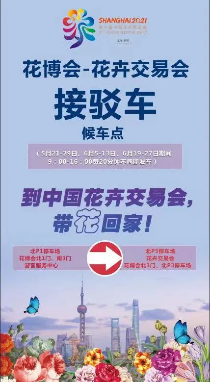 花博会北一门、南三门的游客服务中心有直达交易会的穿梭巴士。