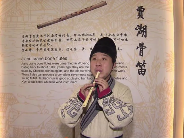 一根8700多年前设计的骨笛在现代人的手中演奏出了世界经典名曲《友谊地久天长》,让与会嘉宾们驻足聆听。
