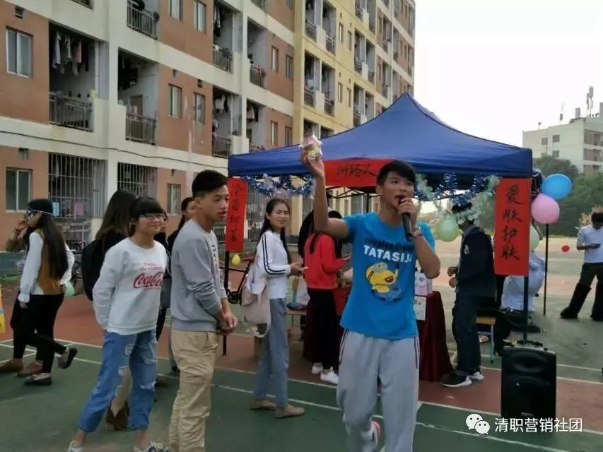 12日下午,协会特色活动“营销之星技能大赛”复赛的摆摊活动在13栋篮球场如火如荼开展。