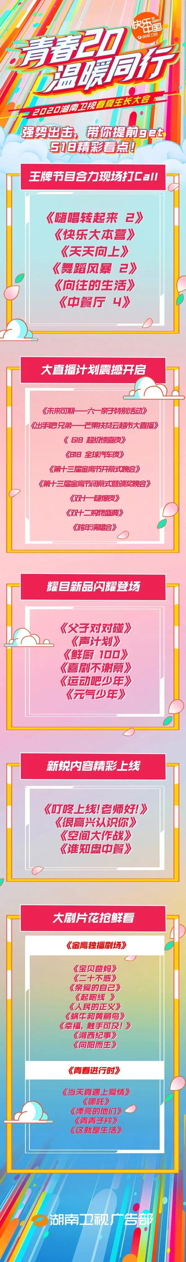 5月18日,以“青春20,温暖同行”为主题,2020湖南卫视春夏生长大会在长沙顺利举行。