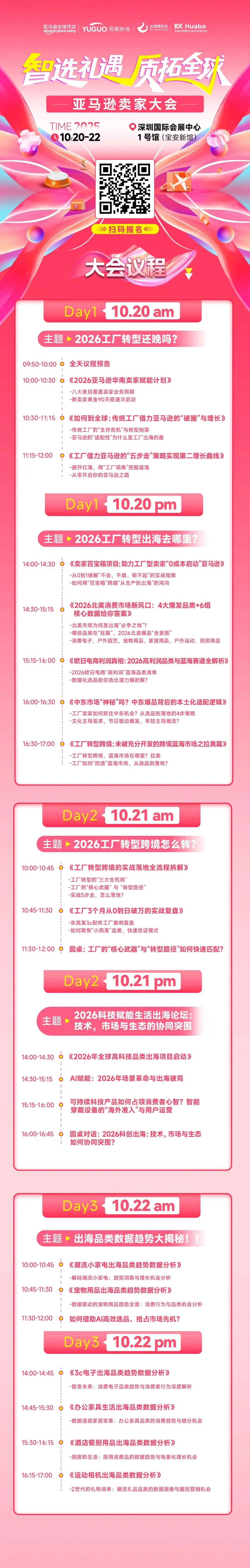 2025GGE跨境出海博览会期间,亚马逊全球开店将在期间举办三天的千人峰会,亚马逊作为跨境的头部平台,超豪华阵营将在现场为卖家传授卖家在黑五、圣诞、万圣节等年终旺季爆单的核心引擎攻略。主办方励展华博已经邀请了大湾区1600+千万级大卖完成了预报名登记。
