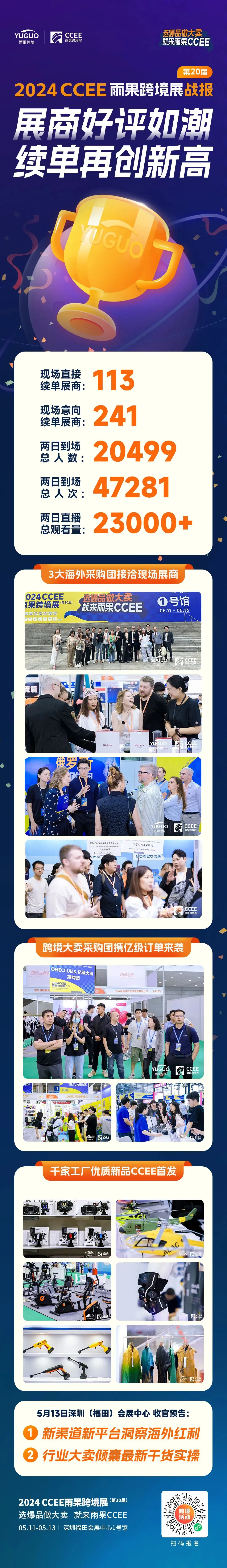 5月12日2024CCEE雨果跨境展(第20届)精彩继续,“选爆品,做大卖”,深圳福田会展中心1号馆再次出现“人挤人”现象,远超两万的跨境电商卖家赶来选跨境爆款。