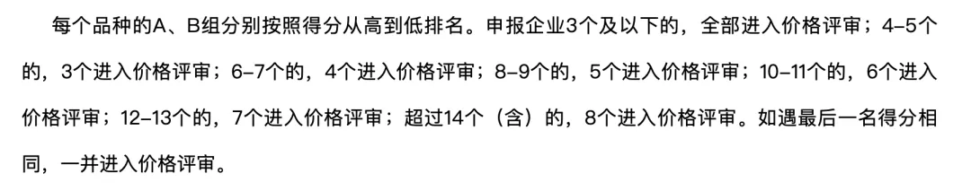 无独有偶,河南省将投标品种的相关资质分成A组和B组,原研药、参比制剂、过一致性评价的仿制药以及纳入《中国上市药品目录集》的药品列为A组,其他药品列为B组。同组申报企业在3家以上的,采取综合评审的方式确定拟中选企业;而申报企业为1-2家的,采取议价谈判。