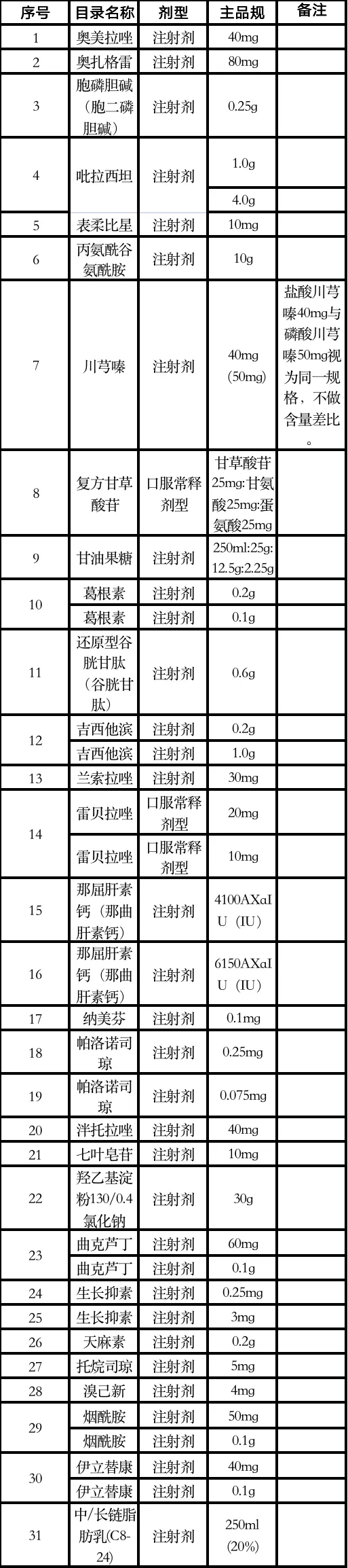而河南省则是按照积极稳妥、分步推进的原则,在采购金额高、使用量大、市场竞争充分的药品中选出共31个大品种,包括奥美拉唑、奥扎格雷、胞磷胆碱(胞二磷胆碱)、吡拉西坦、表柔比星、丙氨酰谷氨酰胺、川芎嗪、吉西他滨、兰索拉唑、雷贝拉唑、帕洛诺司琼、七叶皂苷、曲克芦丁和伊立替康等品种。