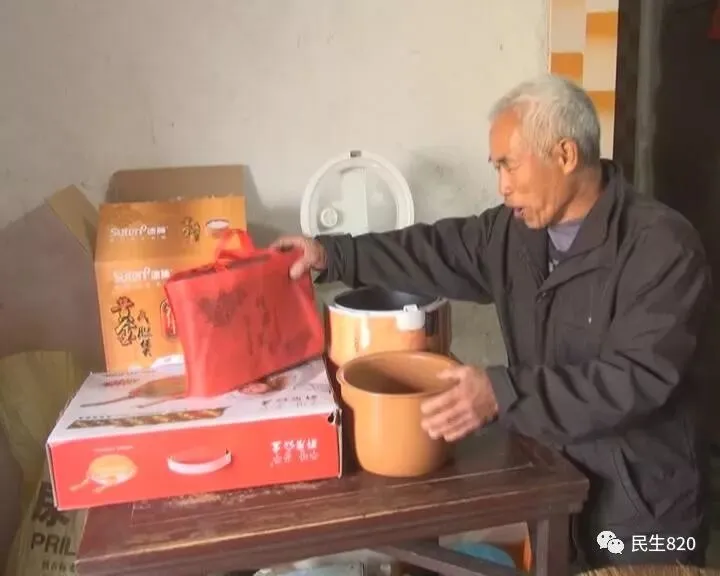 在梅县区水车镇小桑村杨伯家,他给记者拿出一大堆东西,堆满了座椅和桌子,说这些就是他参加村里展销会的“战利品”。