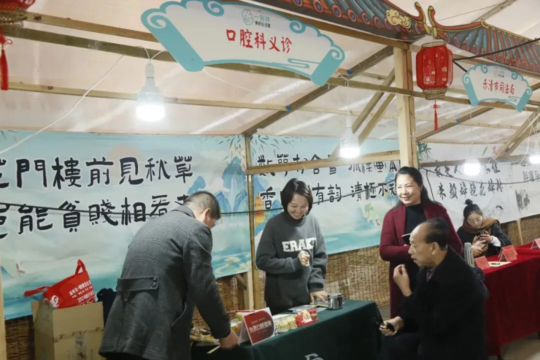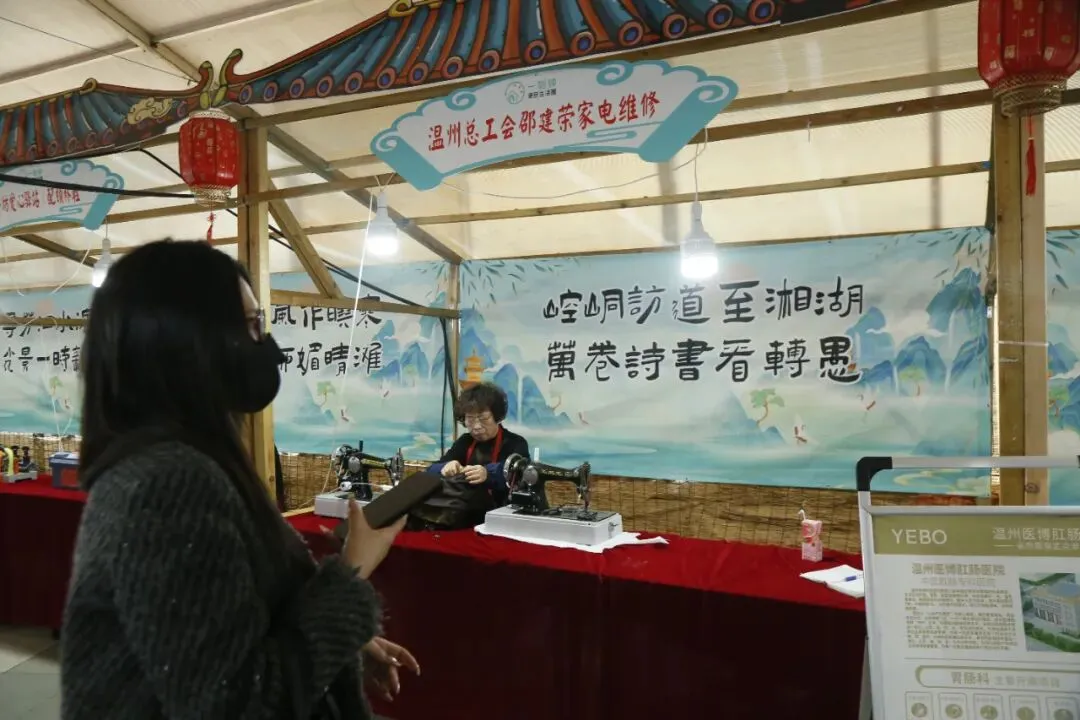 展销会现在配备了免费公共服务。乐清司法局工作人员现场免费提供法律咨询、公证服务咨询、法律援助等;口腔义诊、眼科义诊、北京同仁堂义诊、免费配钥匙,修补衣服鞋子、免费测量血压等服务