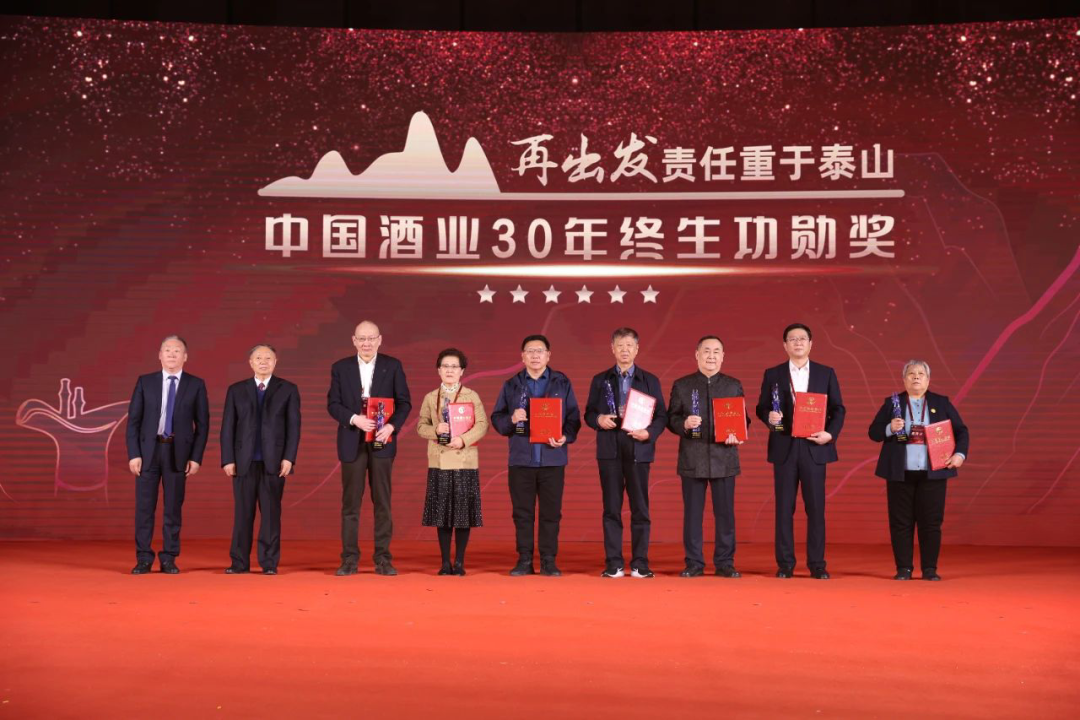 为致敬为行业发展作出卓越贡献的酒业前辈,表彰近30年来的行业先进典型。庆典现场,中国酒业协会还向33位老专家、老前辈、老一代工匠们追授了“中国酒业30年终生功勋奖”,中国轻工业联合会原会长步正发、中国酒业协会理事长宋书玉向“中国酒业30年终生功勋奖”获得者的家属代表颁发了荣誉。
