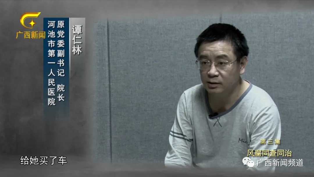 河池市第一人民医院原党委副书记、院长 谭仁林:我是2012年7月中旬上来担任院长,陆陆续续就有人来,通过年前、春节前,或者是中秋节前、国庆节前,通过一些拜访来给这个钱款,还有一些礼物。