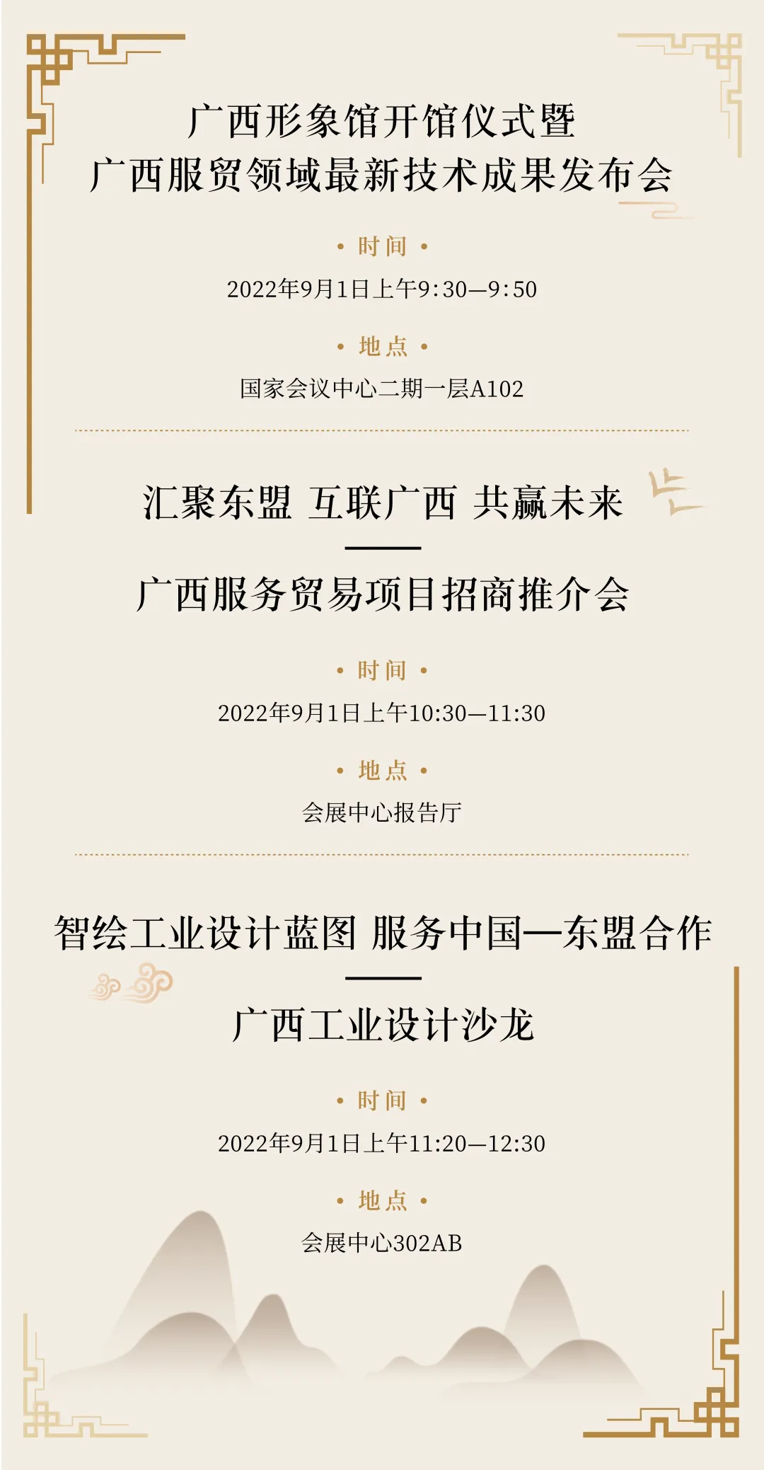 展会期间,广西交易团除举办广西形象馆开馆仪式外,还将举办广西服贸领域最新技术成果发布会、广西服务贸易项目招商推介会、广西工业设计沙龙等系列配套活动。更广泛组织广西有关企业参加旅游、文化、金融、运输、中医药、服务外包等专题的线上线下洽谈交易,借助服贸会的平台,更好地展示广西服务贸易发展合作潜力,争取更多投资者到广西投资兴业。