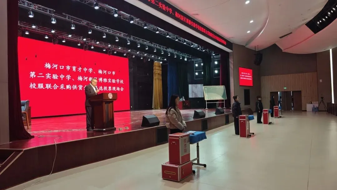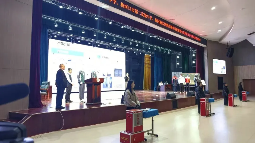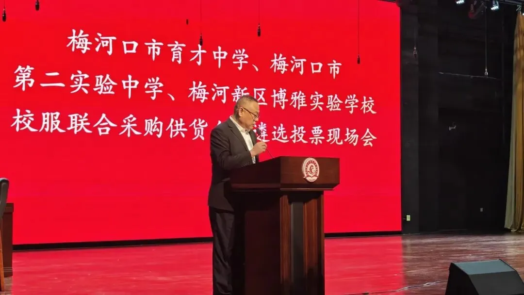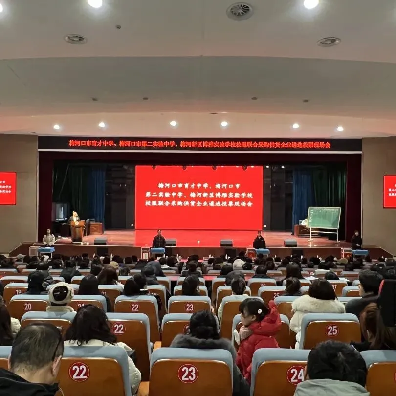 2025年12月19日,梅河口市育才中学、第二实验中学、梅河新区博雅实验学校联合举办校服供货企业遴选投票现场会,通过“企业展示+现场投票”方式,从5家入围企业中选出学生专属“放心校服”供应商。相关领导及三校家长、教师、学生代表全程参与监督,以“看得见的公平”筑牢校园采购廉洁防线。