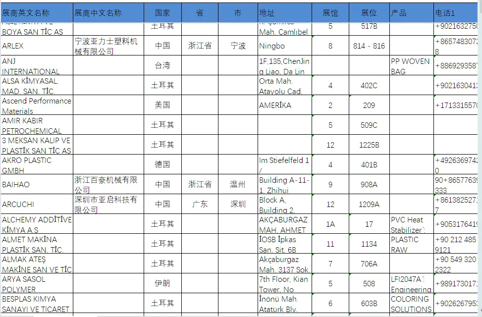 《2025年土耳其国际塑料工业展Plast Eurasia Istanbul展商名录参展商名录Excel版》