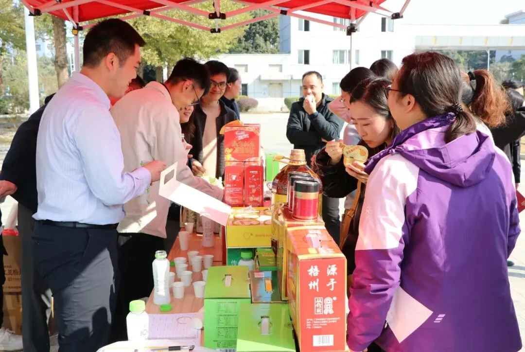 双钱牌龟苓膏、田七牙膏、神冠腊肠、天之润蜂蜜、梧州六堡茶……12月19日,粤桂合作特别试验区(梧州)举办“新春购年货 消费助振兴”企业产品推介暨新春产品采购会,琳琅满目的特色产品映入眼帘,在每一个展销台前,都围满了前来参观的企业代表。