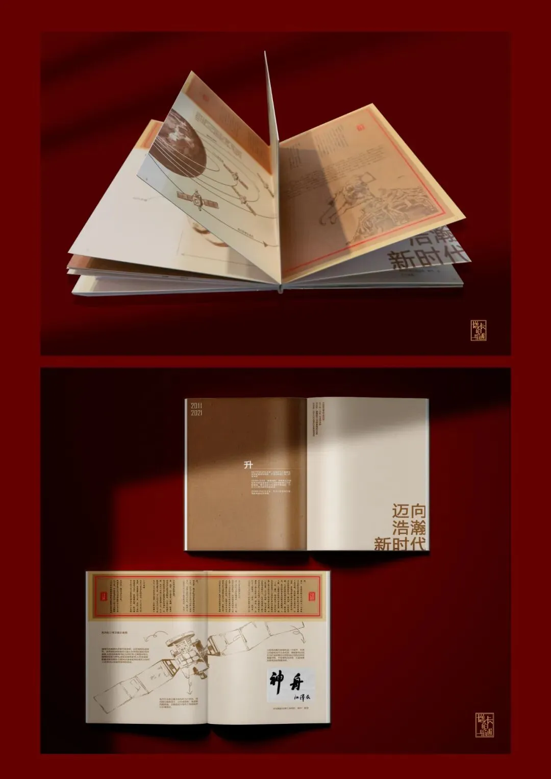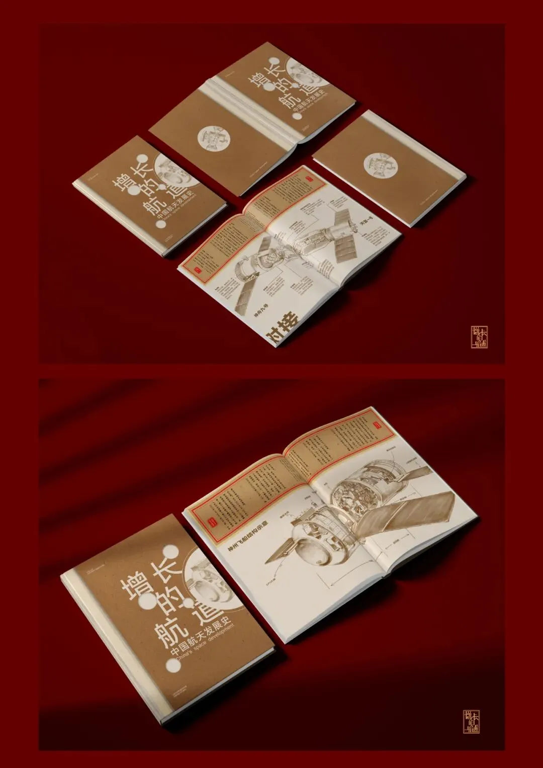 通过史料类书籍和插画结合的方式展现中国航天自1956年至今的发展变迁。通过对书籍设计中的文字、插画、内页版式设计等风格的尝试,探索史料类书籍风格中版式设计风格的应用,力求为史料类书籍板式设计的风格提供借鉴和经验。