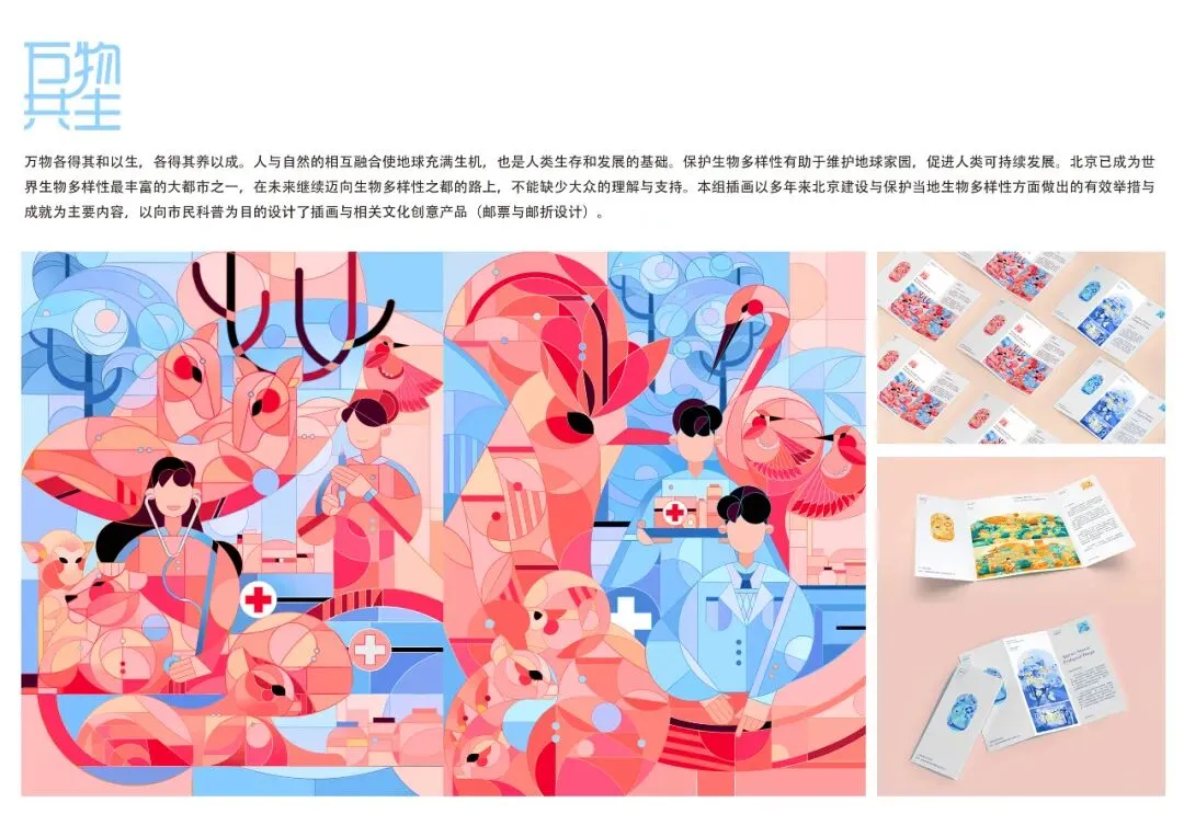 万物各得其和以生,各得其养以成。生物多样性使地球充满生机,也是人类生存和发展的基础。保护生物多样性有助于维护地球家园,促进人类可持续发展。北京已成为世界生物多样性最丰富的大都市之一,在未来继续迈向生物多样性之都的路上,不能缺少大众的理解与支持。而恢复与建立生物多样性不仅要依靠政府的政策,还要唤起更多市民认识自然、敬畏自然的朴素情感。本组设计以多年来北京建设与保护当地生物多样性方面做出的有效举措与成就为主要内容,以向市民科普为目的制作了科普动态插画与相关文化创意产品。