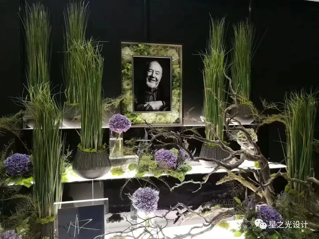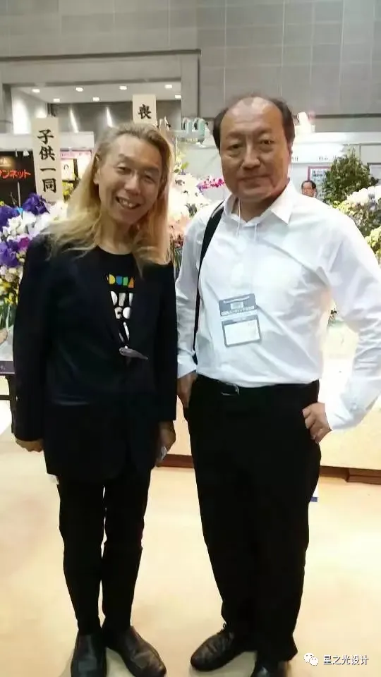 在2016年展会上还有一位在日本家喻户晓的人物参展——假屋崎省吾。此人虽然名字有点古怪(姓假屋崎名省吾),发型也很奇特,却是日本国宝级的花艺大师,有外国元首访问日本时日本政府大都请他去插花。当时我的两个女儿对我和他一起合影惊讶不已。顺便说一句,在日本不仅仅是花艺大师积极参与殡葬展,就连安藤忠雄和隈研吾那样世界级的建筑大师都对殡葬建筑情有独钟,日本殡葬又焉能不牛!
